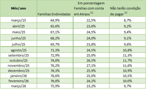 Por fim, o percentual de famílias que declaram não ter condições de pagar suas dívidas em atraso recuou de 10% para 9,7%, o equivalente a 99,2 mil famílias que ainda demandam atenção especial na gestão financeira.